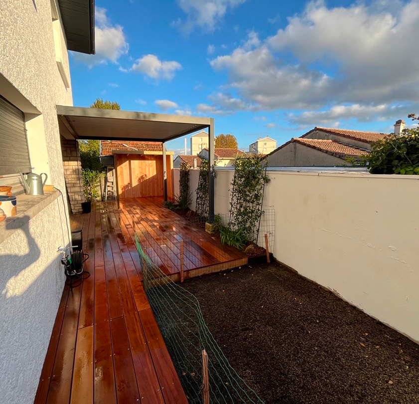 À Bègles, un jeune couple souhaitait transformer son extérieur en véritable prolongement de leur maison. L’idée : créer une cinquième pièce à vivre, à la fois accueillante, fonctionnelle et facile à entretenir. Ils ont donc fait appel à Les Paysages du Sud-Ouest pour donner vie à ce projet sur mesure.